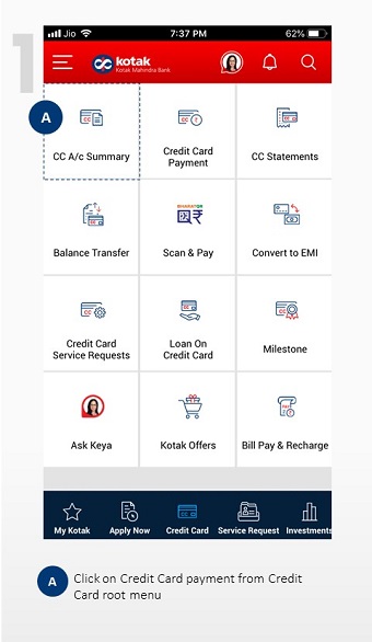 At your request, you are being re-directed to a third party site - https://www.billdesk.com/pgmerc/kotakcard/ wherein you can make your payment from a different bank account. Kotak Cards does not guarantee or warrant the accuracy or completeness of the information, materials, services or the reliability of any service, advice, opinion statement or other information displayed or distributed on the third party site. You shall access this site solely for purposes of payment of your bills and you understand and acknowledge that availing of any services offered on the site or any reliance on any opinion, advice, statement, memorandum, or information available on the site shall be at your sole risk. Kotak Cards and its affiliates, subsidiaries, employees, officers, directors and agents, expressly disclaim any liability for any deficiency in the services offered by BilIDesk whose site you are about to access. Neither Kotak Cards nor any of its affiliates nor their directors, officers and employees will be liable to or have any responsibility of any kind for any loss that you incur in the event of any deficiency in the services of BiIIDesk to whom the site belongs, failure or disruption of the site of BilIDesk, or resulting from the act or omission of any other party involved in making this site or the data contained therein available to you, or from any other cause relating to your access to, inability to access, or use of the site or these materials.