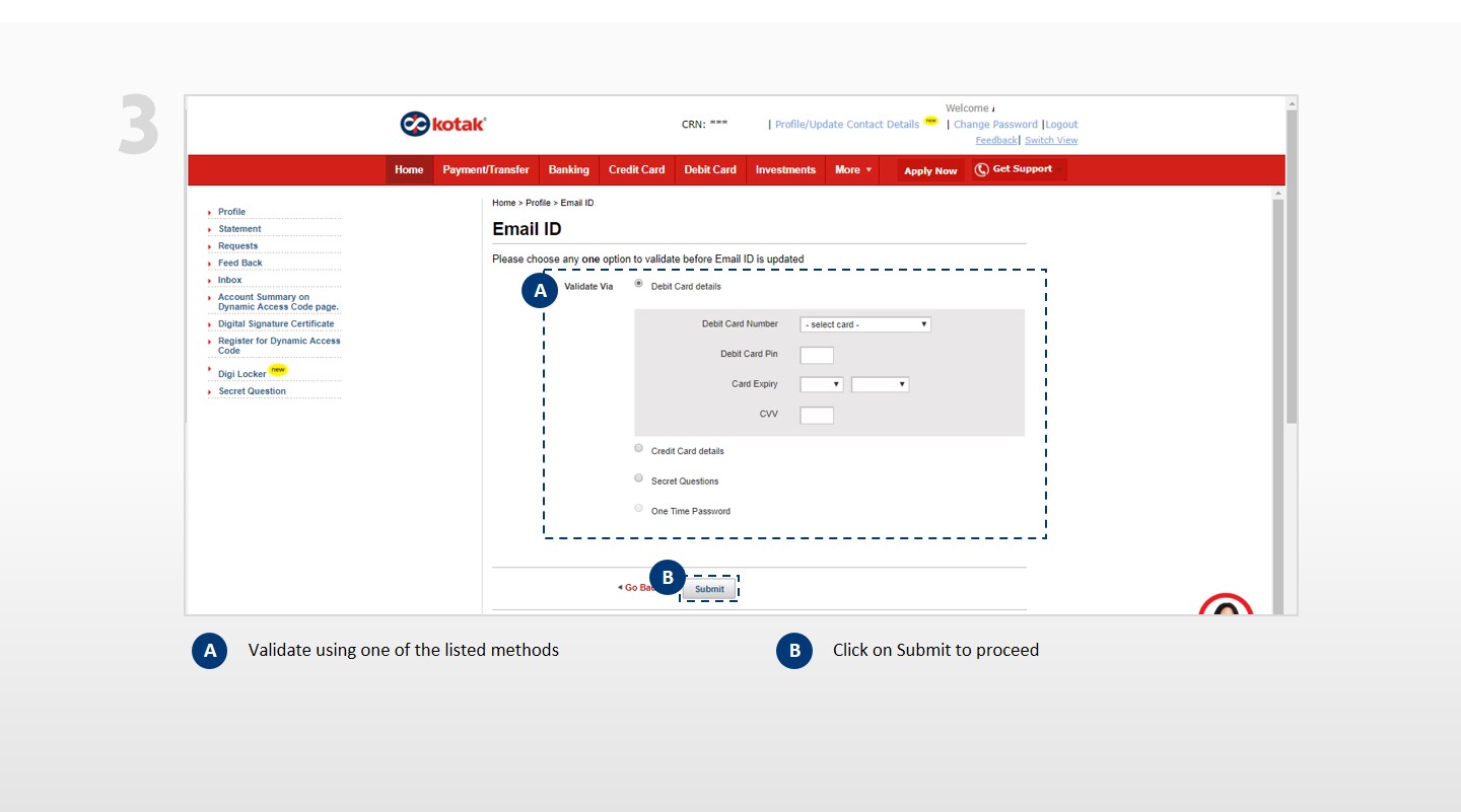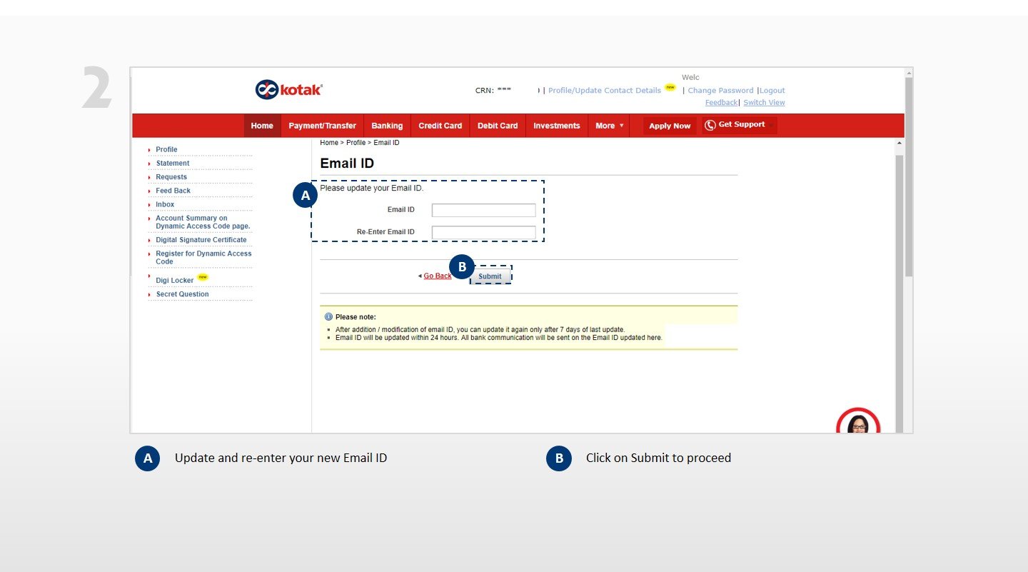 A Step-by-Step Guide illustrating the process to update Email ID in Net Banking