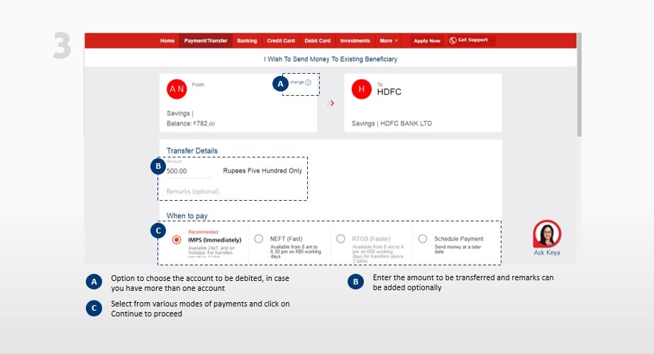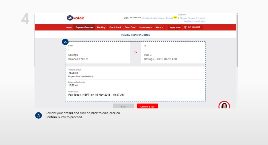 A Step-by-Step Guide illustrating the process to Transfer Funds in Net Banking