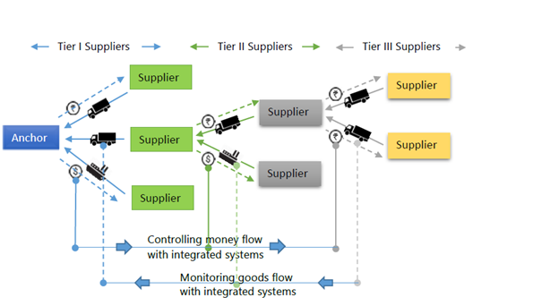 Figure : A typical supply chain. Banks are present at Tier I level and with technology like Block chain can go down further levels