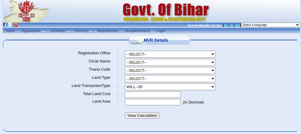 Let’s look at the steps to check land value at Bihar Bhumi using MVR.