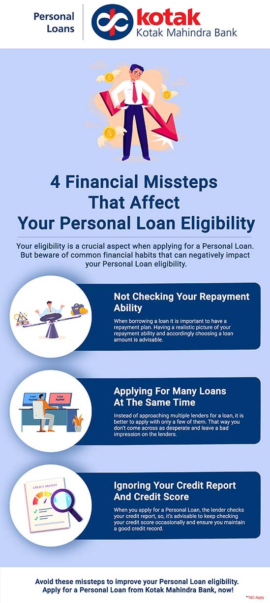 Applying for a personal loan is fairly easy today. You can apply for a personal loan online and get the required funds quickly. However, this does not mean that there are no chances of application rejection. You need to consider the personal loan eligibility criteria before you go ahead and apply for the loan. In fact, it’s best to stay away from the common financial missteps that most people tend to make that end up negatively impacting their personal loan eligibility. Here’s what you need to know: