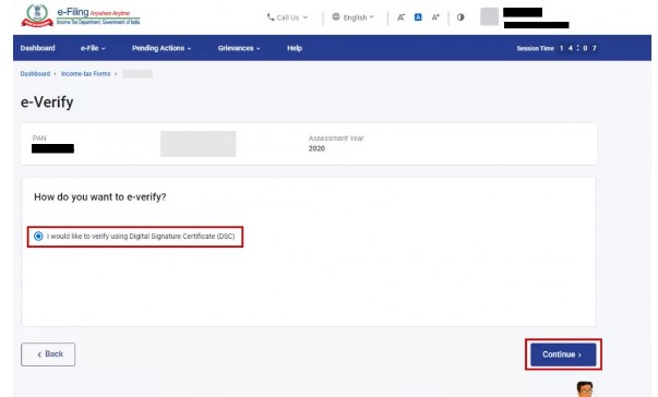 Please note: e-Verification via DSC is mandatory for returns filed by companies and political parties as well as other persons whose accounts are required to be audited under Section 44AB of the Income Tax Act. In other cases, it is optional.