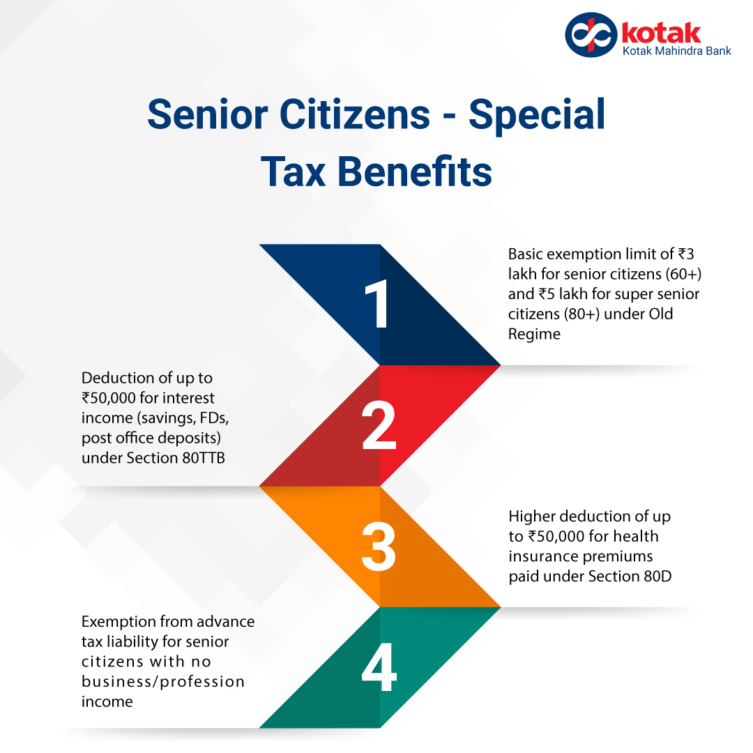 The Income-tax Act, 1961 (hereafter referred to as 'the Act') has provisions dedicated to granting tax benefits to senior citizens over the age of 60 to reduce their tax liability as follows: